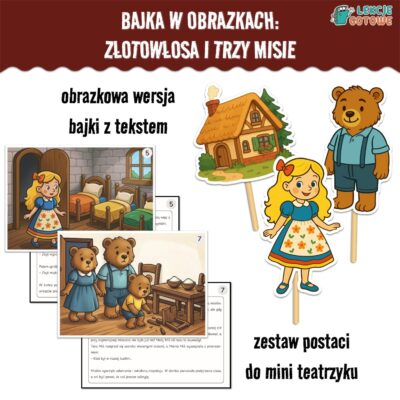 Materiały przygotowane są w formacie PDF i DOCX do druku, dzięki czemu można je szybko wykorzystać podczas zajęć w przedszkolu, klasach 1–3 oraz w świetlicy. Sprawdzają się zarówno przy organizacji Dnia Teatru, jak i podczas zajęć związanych z bajkami, opowiadaniami oraz rozwijaniem ekspresji artystycznej dzieci.