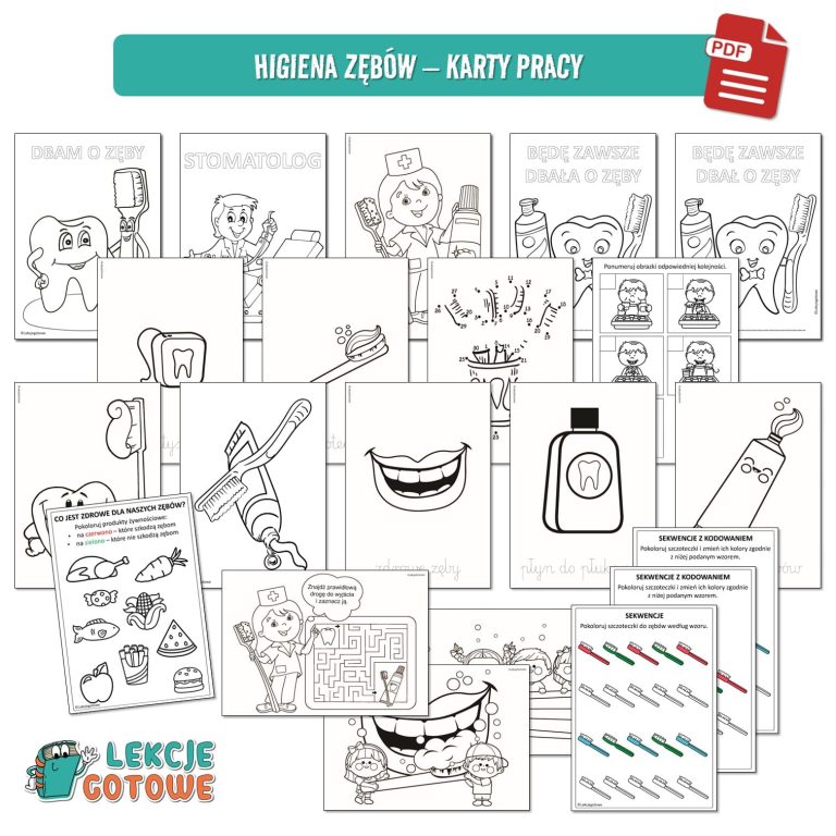 Zestaw edukacyjny „Higiena” to komplet materiałów do druku, który w przystępny sposób wprowadza dzieci w tematykę dbania o zdrowie. Zestaw obejmuje plansze i ilustracje dotyczące mycia rąk, pielęgnacji zębów oraz innych nawyków związanych z higieną. Dzięki niemu dzieci w przystępny sposób poznają zasady dbania o siebie i dowiadują się, jak skutecznie chronić się przed bakteriami. Materiał świetnie sprawdzi się w pracy z dziećmi w przedszkolu oraz w klasach 1–3 – zarówno podczas Światowego Dnia Zdrowia (7 kwietnia), jak i w trakcie codziennych zajęć edukacyjnych czy profilaktycznych.