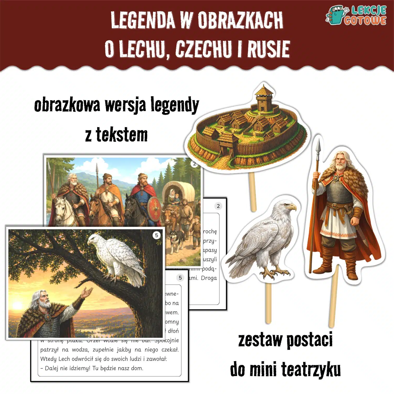 Co zawiera produkt “Legenda w obrazkach – o Lechu, Czechu i Rusie” (PDF do druku)?