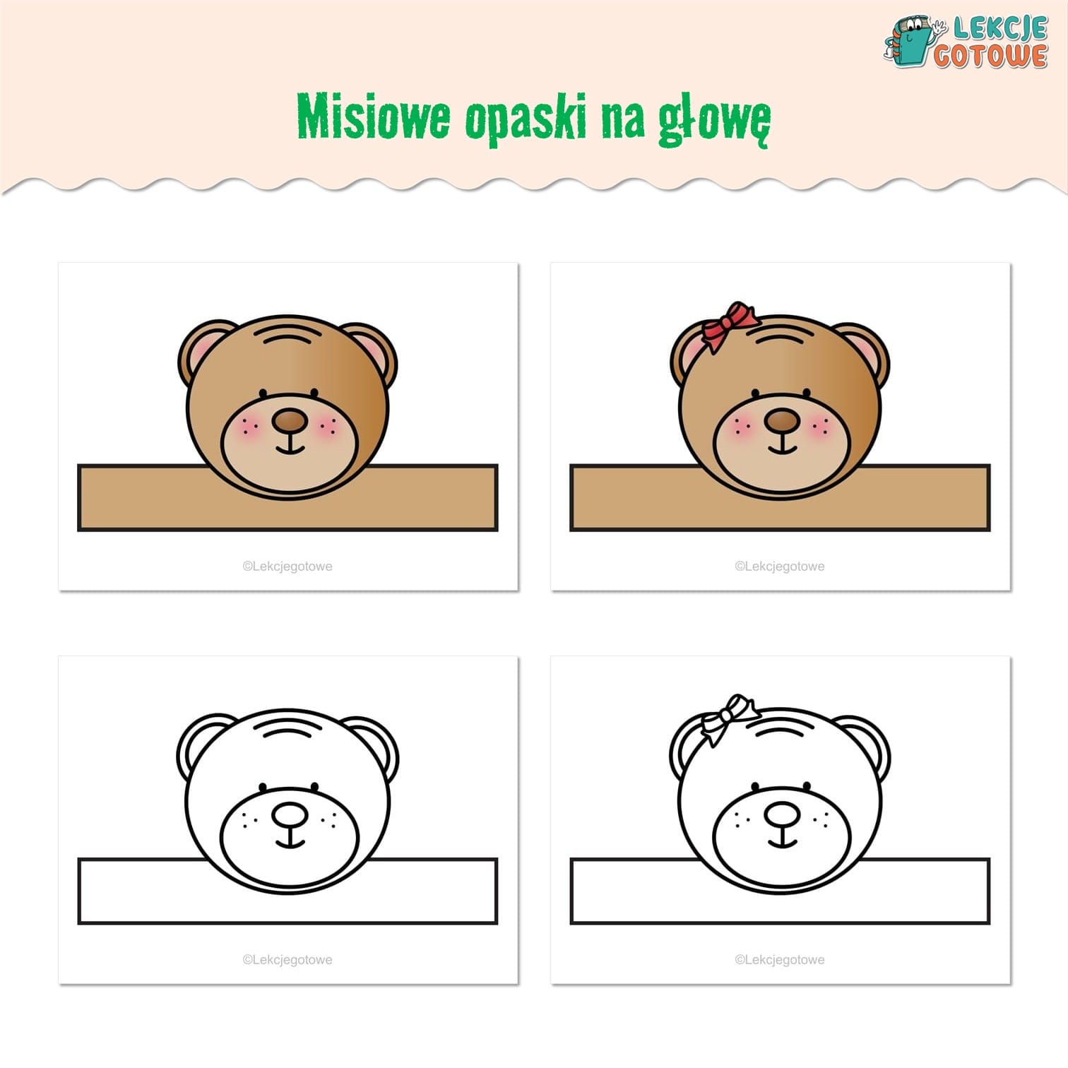 - elementy gotowe do druku, wycięcia i złożenia w efektowne misiowe opaski.