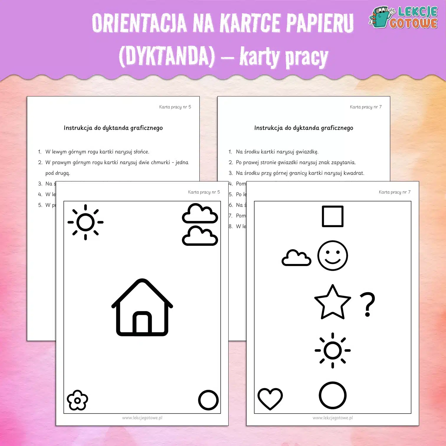 Orientacja na kartce papieru (dyktanda) – karty pracy - PDF