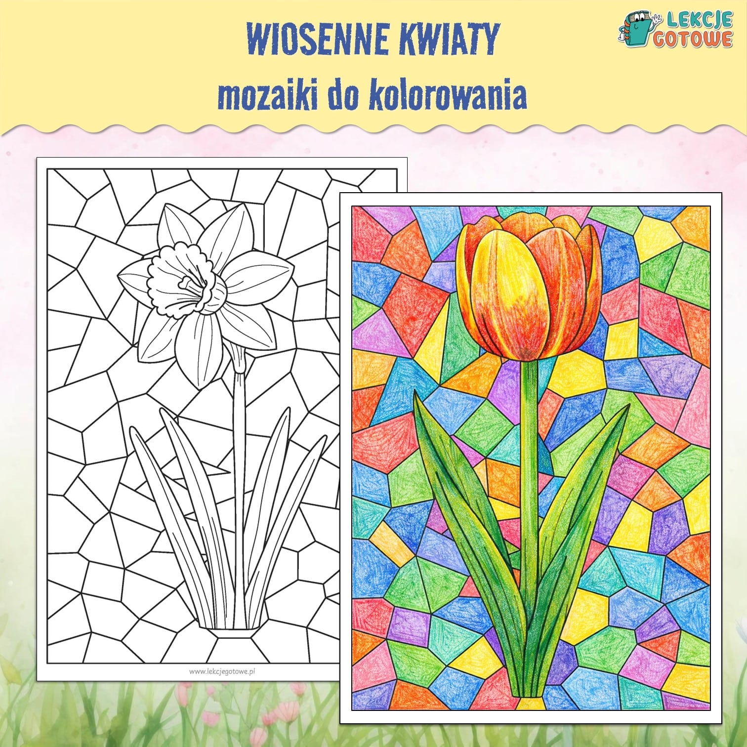 Wiosenne kwiaty – mozaiki do kolorowania - PDF